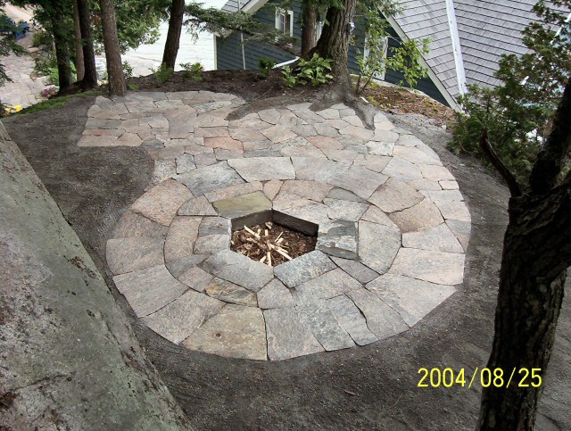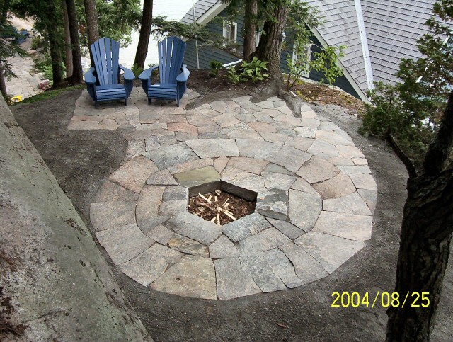 Natural stone landscaping in Parry Sound / Muskoka and the Georgian Bay Area. Quality flagstone hand carved and dry laid. Transform bush into trails down to waters edge with terraced patio's walkways and steps used to turn steep grade cottage lots into fine estates on Lake Muskoka, Joseph, Rosseau, and the Georgian Bay. All work guaranteed.