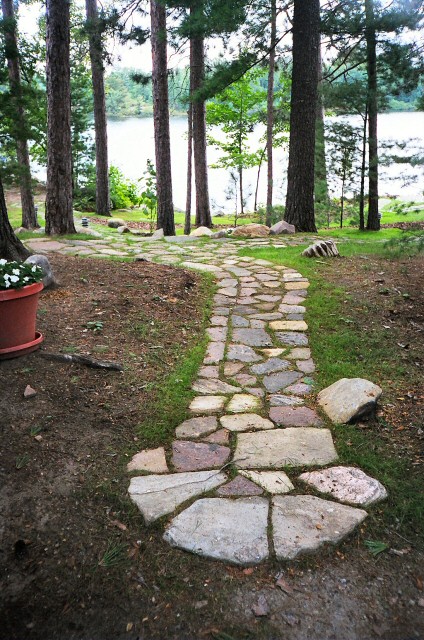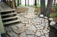 Natural stone landscaping in Parry Sound / Muskoka and the Georgian Bay Area. Quality flagstone hand carved and dry laid. Transform bush into trails down to waters edge with terraced patio's walkways and steps used to turn steep grade cottage lots into fine estates on Lake Muskoka, Joseph, Rosseau, and the Georgian Bay. All work guaranteed. Click photos to view Photo / Photo Set |